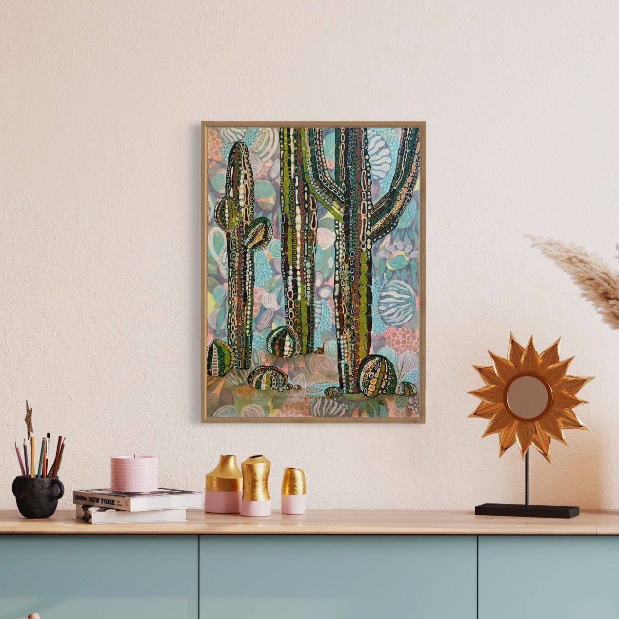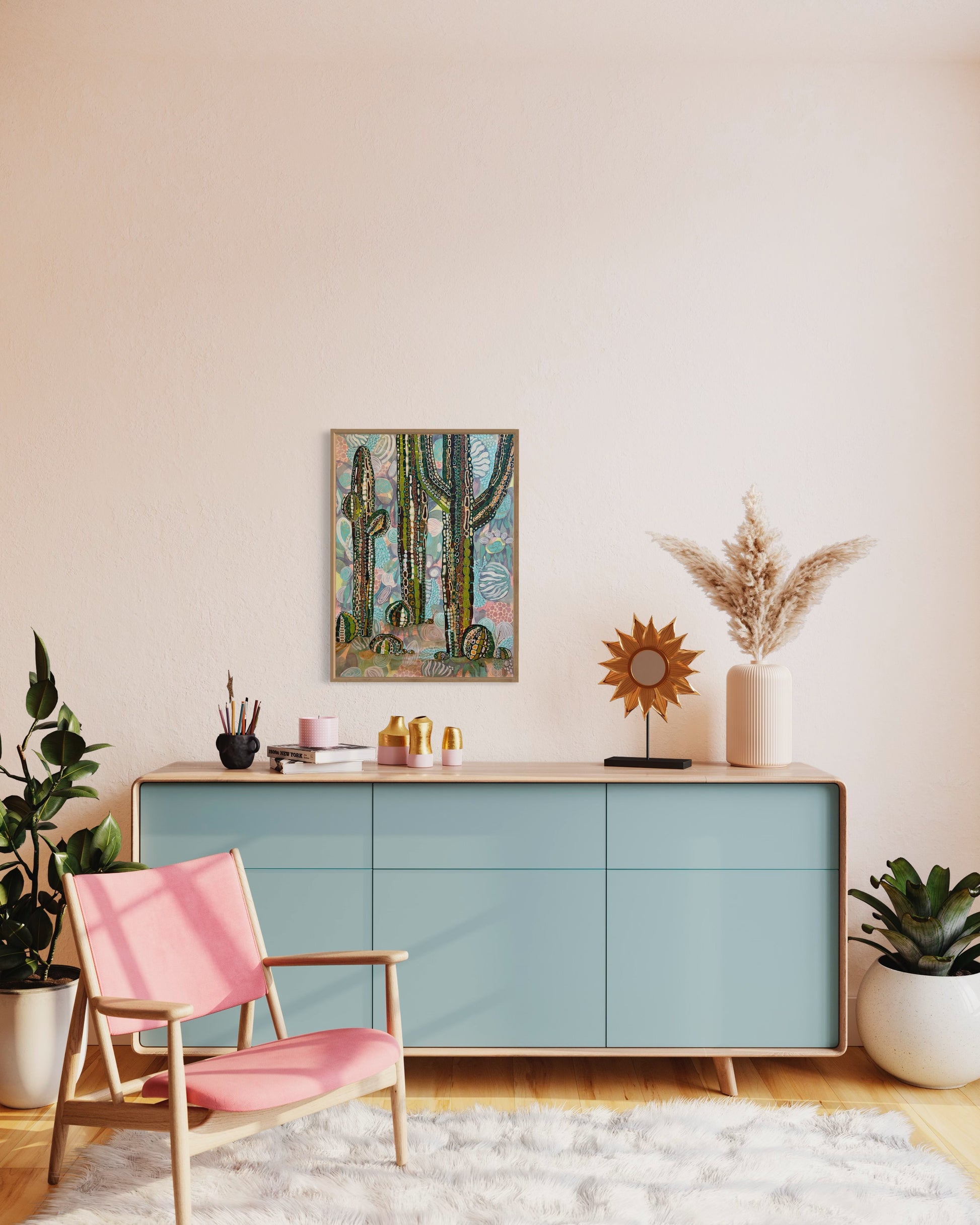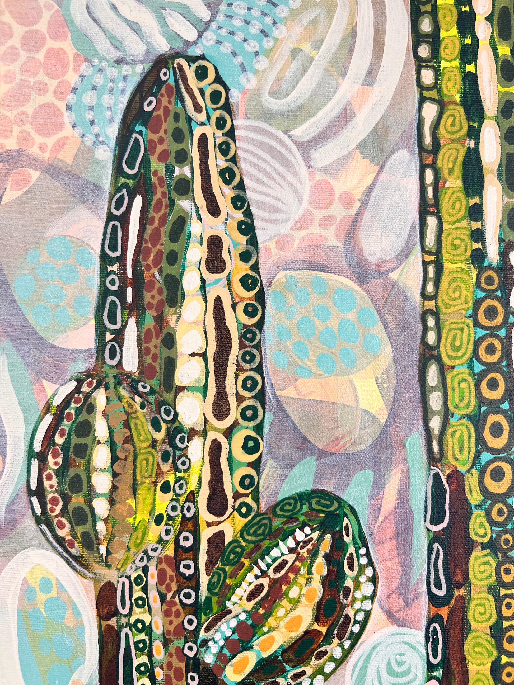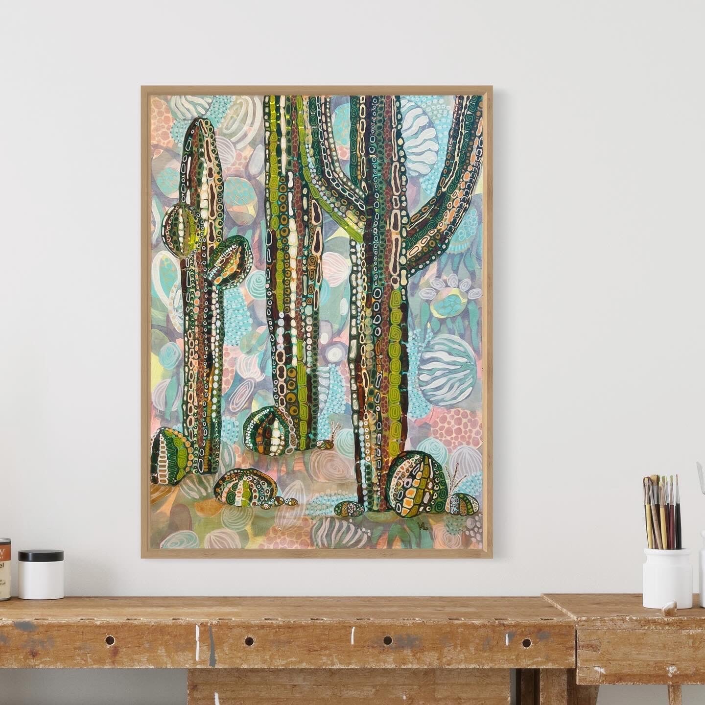 Acrylic on Canvas, framed in a natural maple float frame. 30 x 22 (unframed)