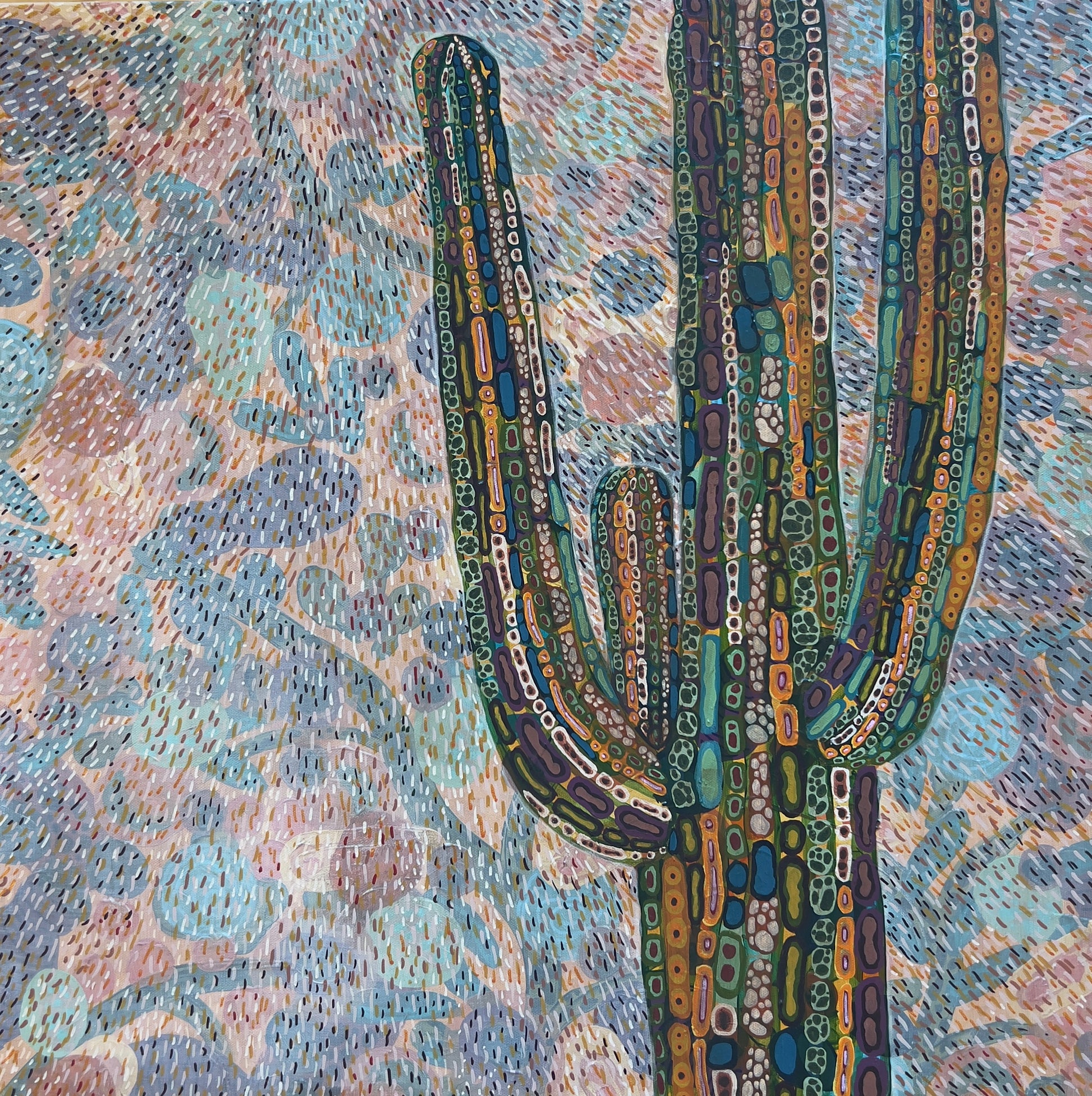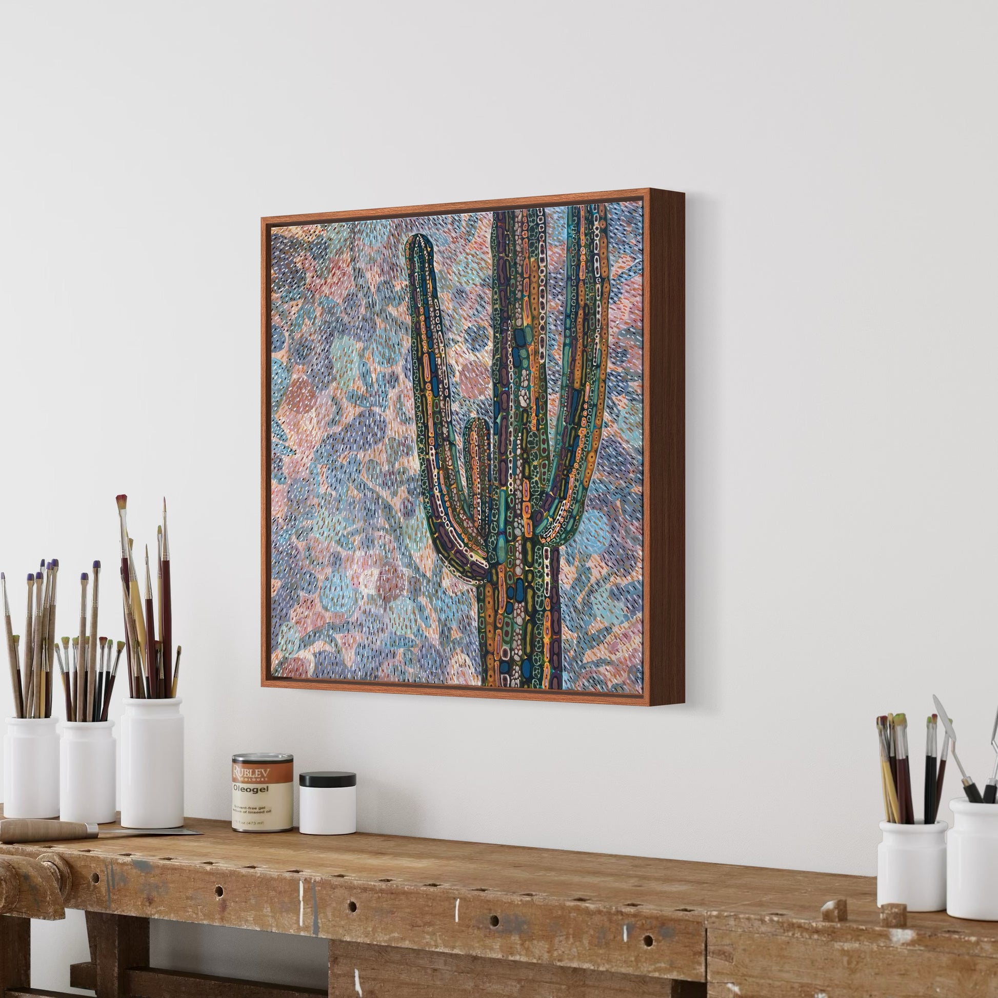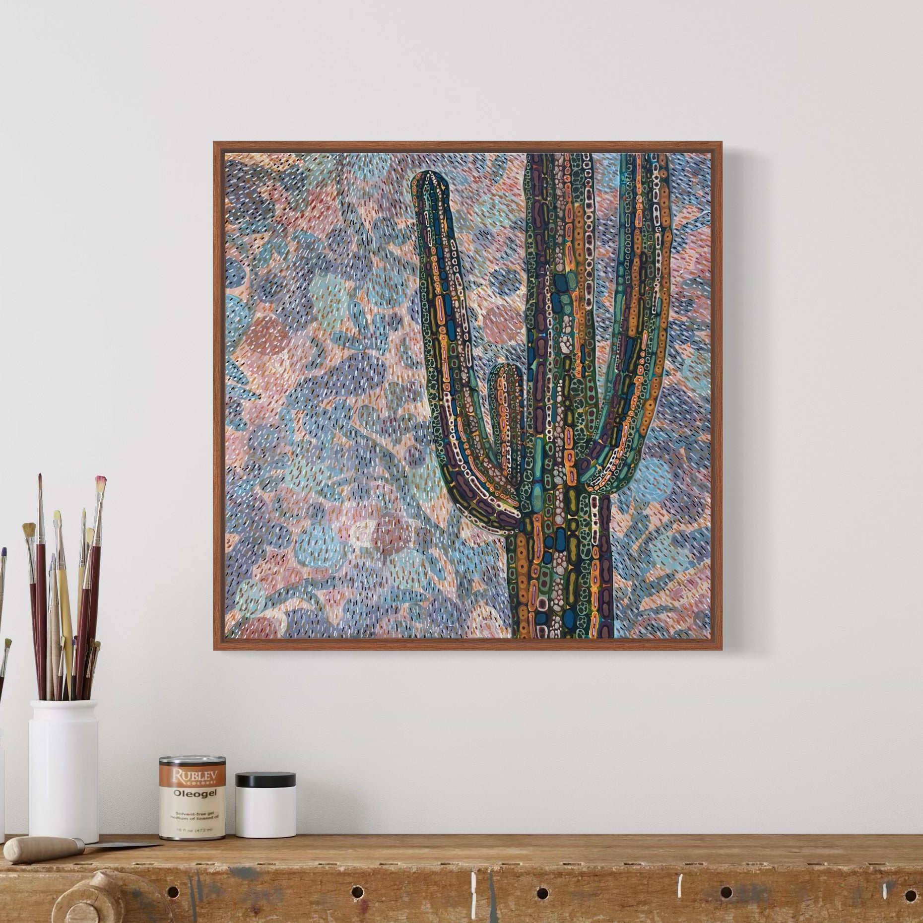 Acrylic on canvas, 24 x 24 framed in a wood float frame.