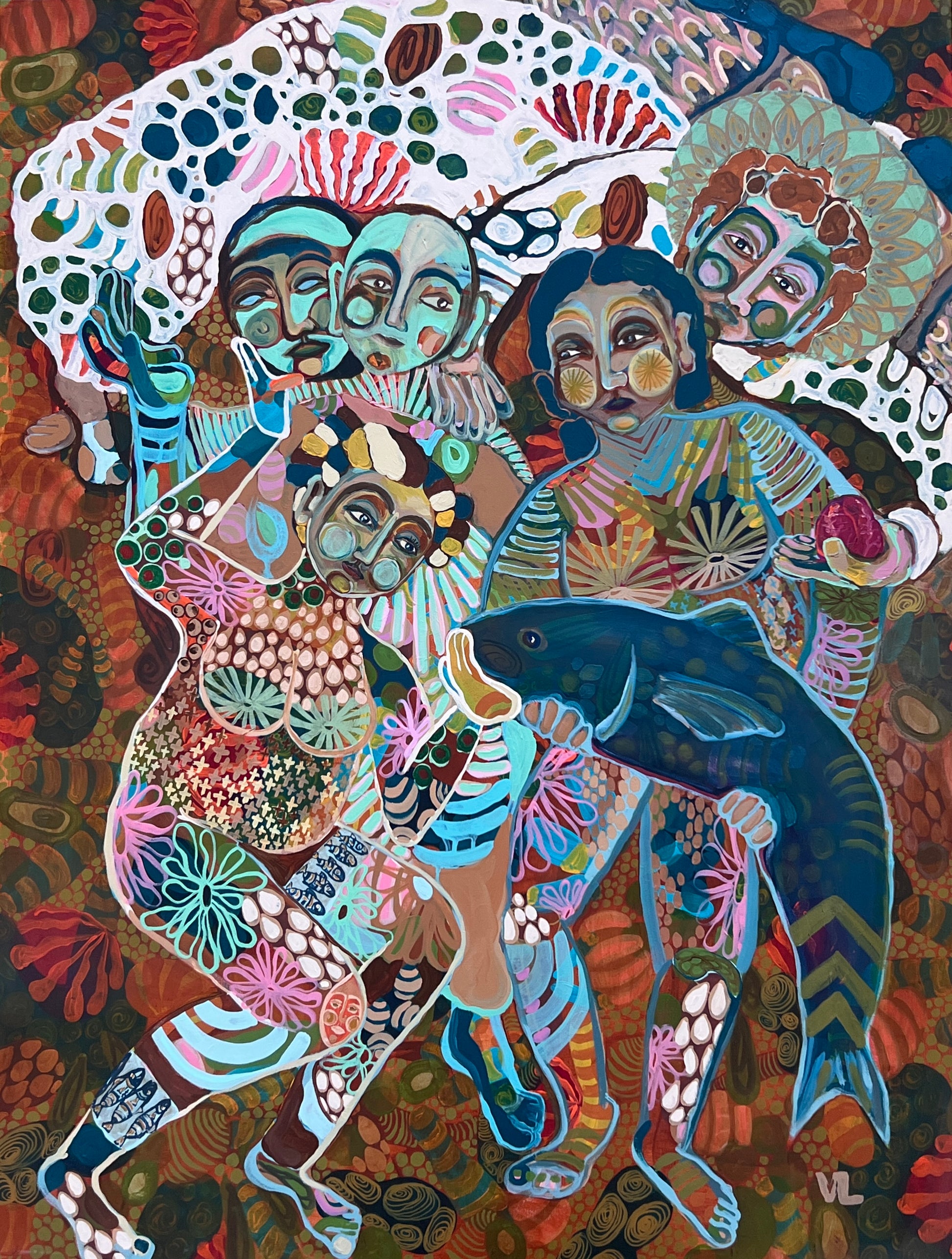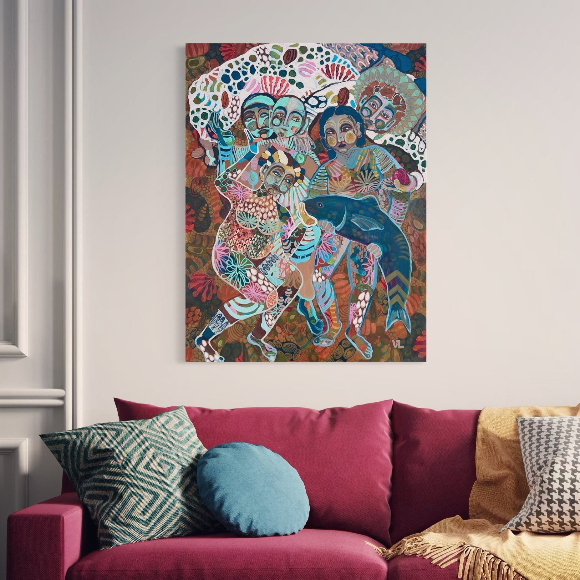 Acrylic on Canvas, 51 x 39 x 2 unframed but stretched. This painting can be unstretched and rolled for easier shipping. Please email if you are out of area to discuss best delivery method.